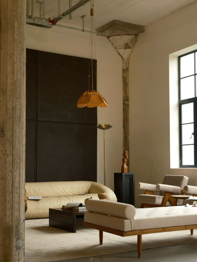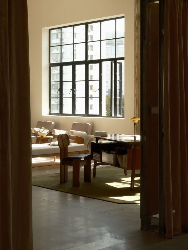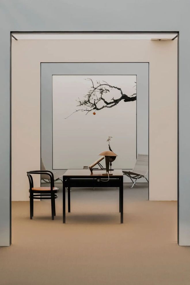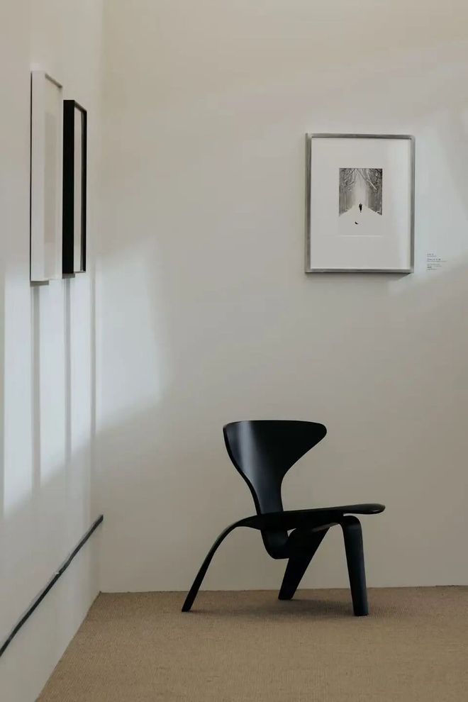 策展团队将Tobia Scarpa的⼏何精准与Alessandro Becchi的柔美曲线结合,允许Pierre Jeanneret的椅⼦在⼈体姿态的低语中安放,同时让Ingo Maurer的灯光如半句未完成的叙事般闪烁。同时,参展艺术家有迪伦.道尔、杰西.艾伦、倪志琪、卡⽶卡.嘉诺蒂以及钱宁越作品的融入也让观众得以与空间深度共处——感受⾃⼰的呼吸如何与房间节奏同步,坐下的动作如何完成椅⼦的意图,以及⾃⾝存在如何轻柔地改变空间氛围。