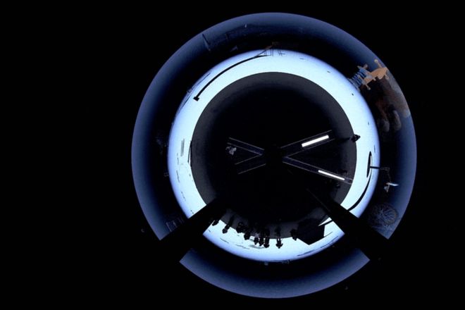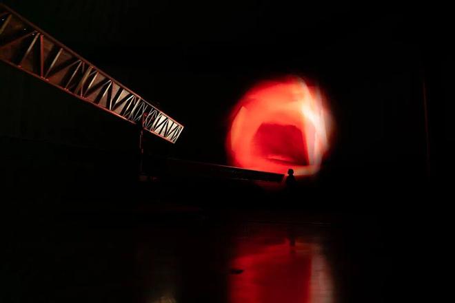 罐体侧壁的影像与指针同频,不断变换时空的形态,空间的意义也随之转变。在这个封闭而连续的空间装置中,现实与虚拟相互渗透、机械与光影同时成为压迫与引导身体行动的力量。时间牧场中转动的指针,不断驱使和改变着场中人群的形态和行为,也引发思考,当人被时间支配,命运被时间塑形,面对这恒久永动的力量,人们该如何选择面对它的姿势。