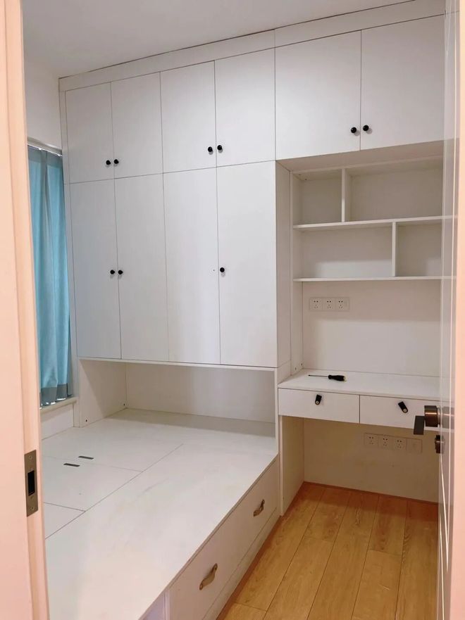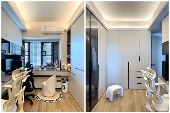 再比如给房间做“转角衣柜+转角书桌柜”设计,收纳、办公、化妆、学习等功能都得到兼顾,比单一的客房实用多了。