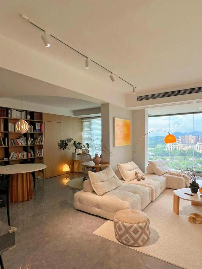 比如将客房与客厅打通,立马就让原本紧凑的空间得到了延伸,使其看起来更加开阔明亮。