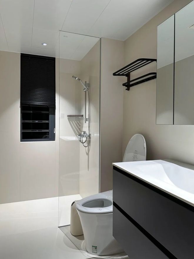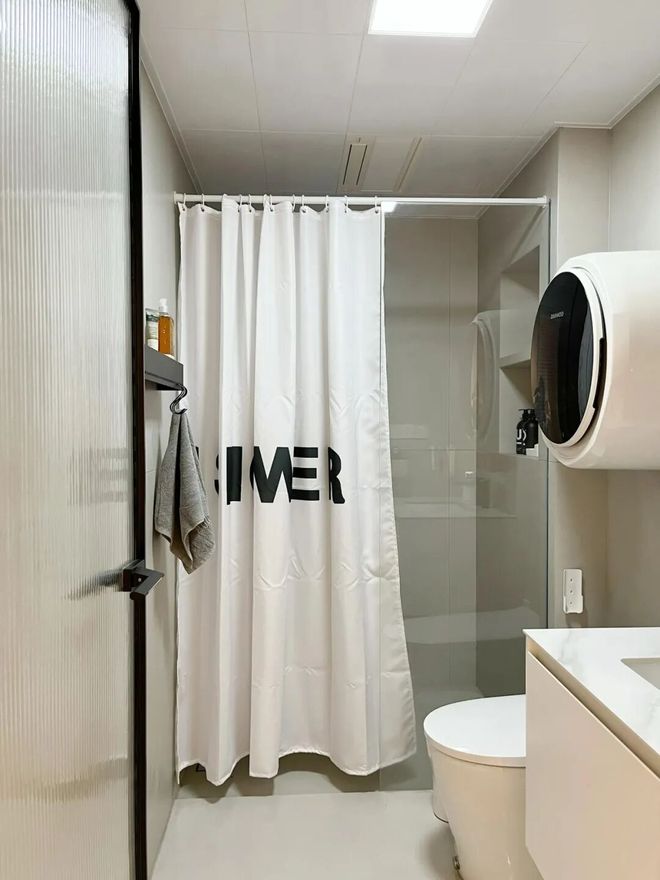 卫生间面积小,安装淋浴移门隔断太拥挤怎么办?那就安装半块玻璃隔断吧,既保障了空间感,看起来也十分高级。