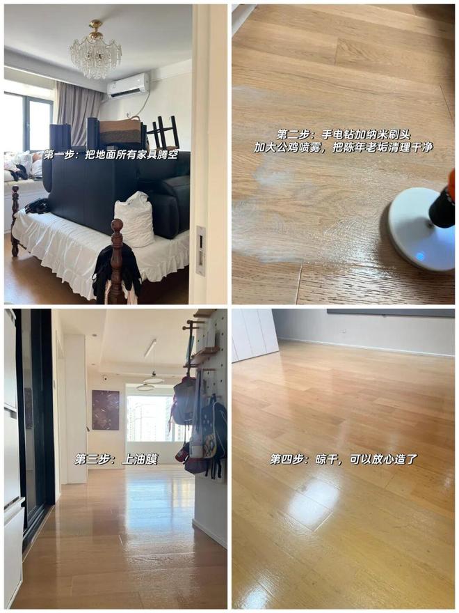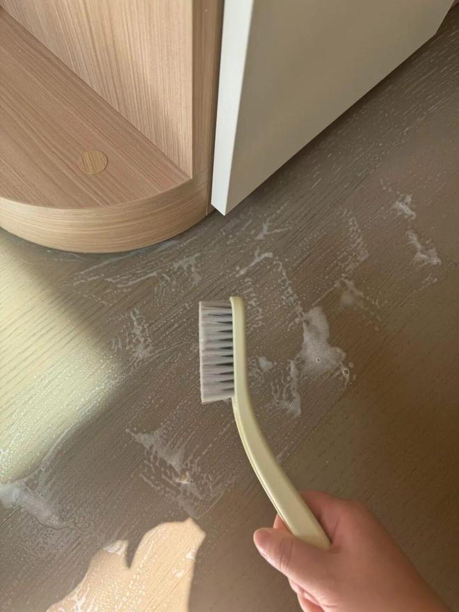 可真正住进去就会发现,这种地板太容易藏灰了。每次都得蹲在地上,用刷子反复刷,才能打理干净,非常痛苦。