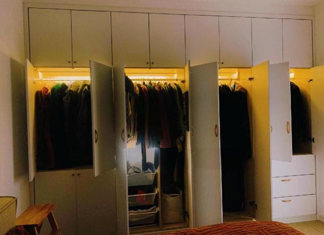 建议:灯带一定要安装在衣柜的外侧,只有这样才能真正起到照明的作用。同时,也不建议给衣柜安装玻璃门,不仅落灰后十分明显,日常使用时还容易留下手印。