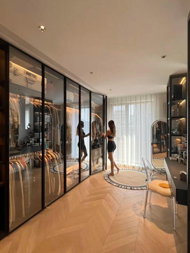 很多人都喜欢在衣柜里加一条灯带,一来起到了照明的作用,二来可以提升氛围感,尤其是搭配上玻璃柜门,更加精致高级。