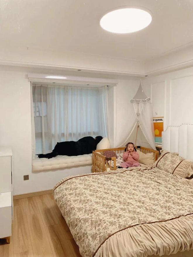考虑了半天,还是决定给卧室飘窗做了“一分为二”设计,一半保留下来,铺上软软的垫子,方便平时休息。