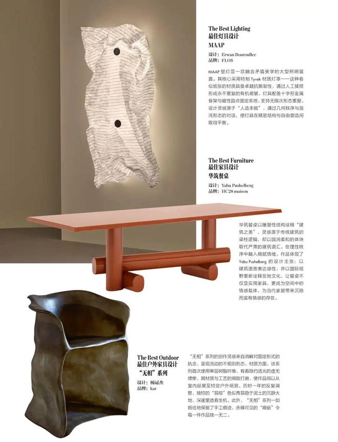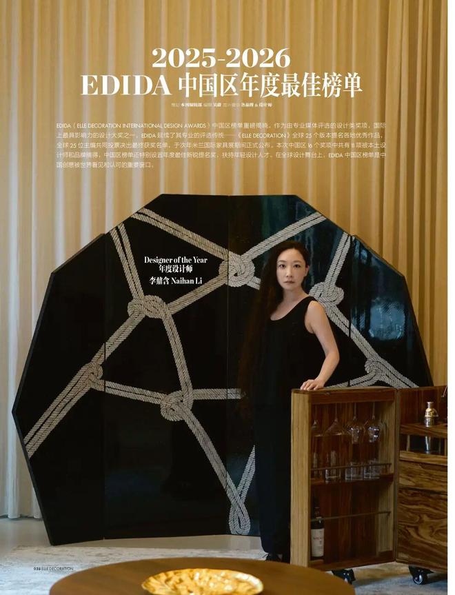 2025-2026 EDIDA(ELLE DECORATION INTERNATIONAL DESIGN AWARDS)中国区榜单重磅揭晓。本次中国区16个奖项中共有11项被本土设计师和品牌摘得,中国区榜单还特别设置年度最佳新锐提名奖,扶持年轻设计人才。在全球设计舞台上,EDIDA 中国区榜单是中国创意被世界看见和认可的重要窗口。