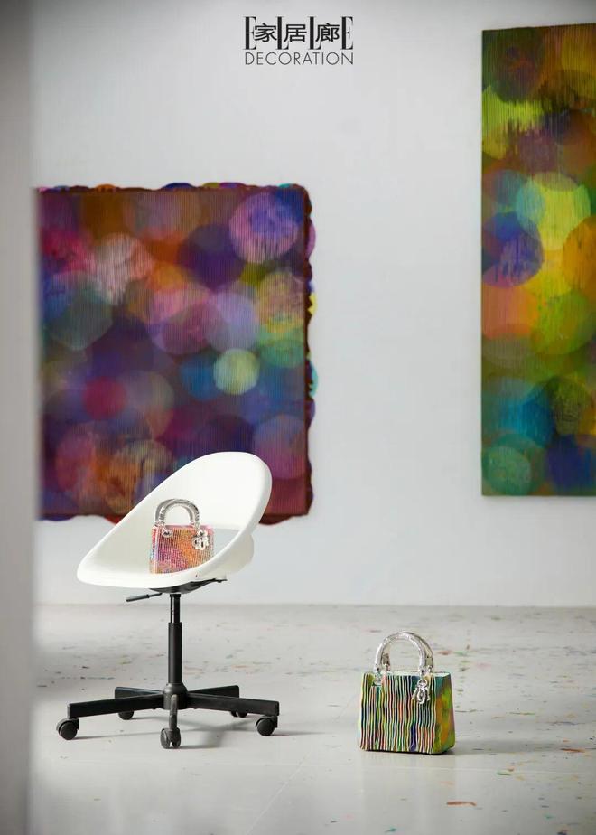 艺术家鞠婷的抽象并不拒绝现实,而是把现实的复杂性转写为纹与层——明亮而不喧闹,丰沛而不堆砌。2025年,鞠婷受邀将她的创作融入Dior的经典包型Lady Dior 之上,她贡献的不是一个图案或纹样,而是一套触觉系统。