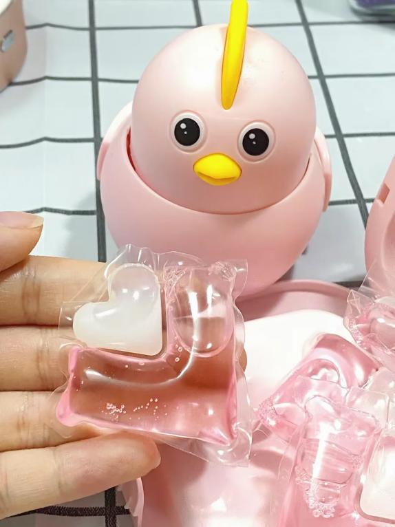 说到洗衣凝珠的另一个问题,我不得不提的是它的“诱惑力”。因为它外观像小糖果,颜色又鲜艳,手感上又像果冻,家里有孩子的话,真的得小心。