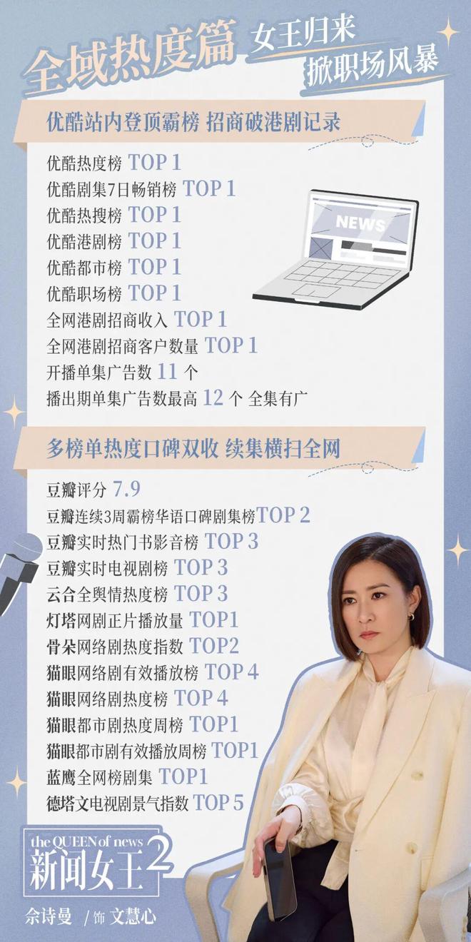 2023年的《新闻女王》,阿佘三封无线“视后”。如今刚播完的《新闻女王2》,续集口碑甚至比前作还好。