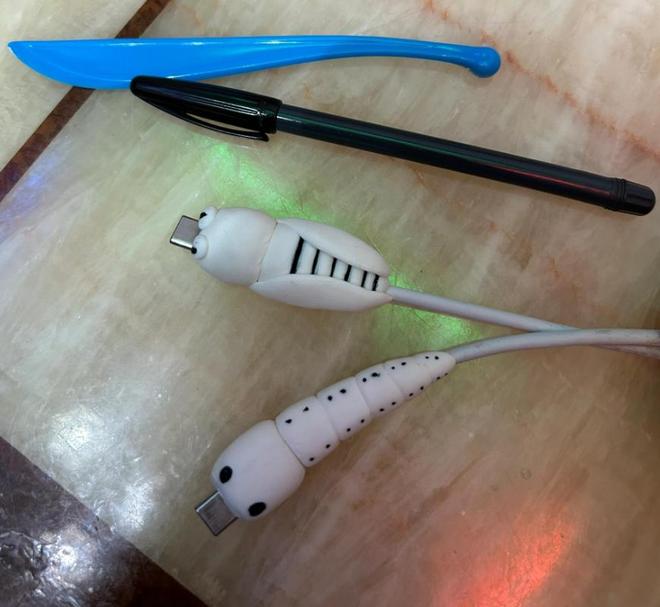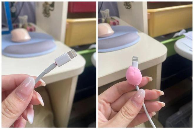 若你有一点动手能力,还可以在数据线上捏一个“蚕宝宝”,不仅起到了保护的作用,还十分有创意。