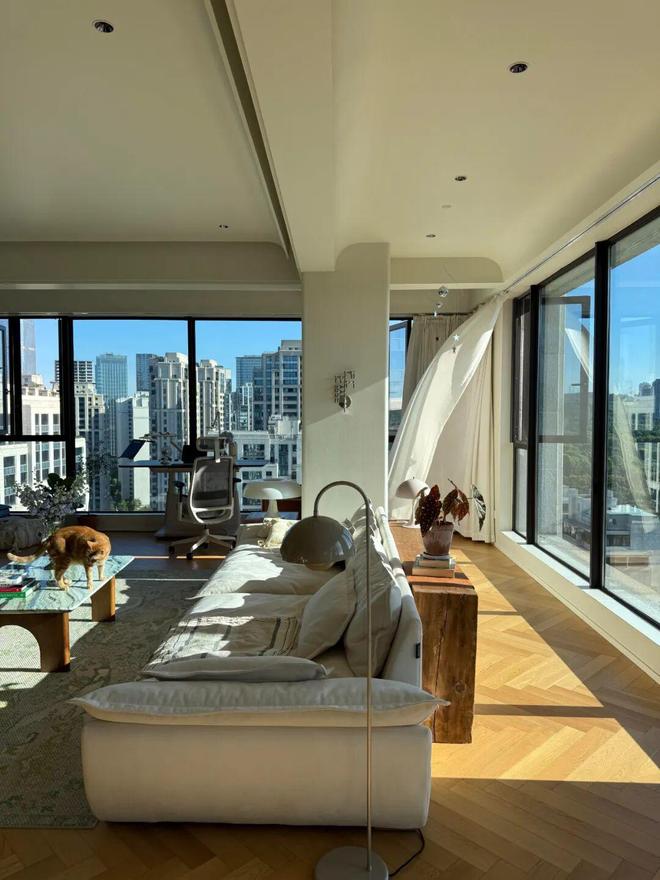 白天光线通透,坐在沙发上就能看云卷云舒;夜晚华灯初上,城市夜景从窗边徐徐铺开,仿佛整片星河都在家的方寸之间。