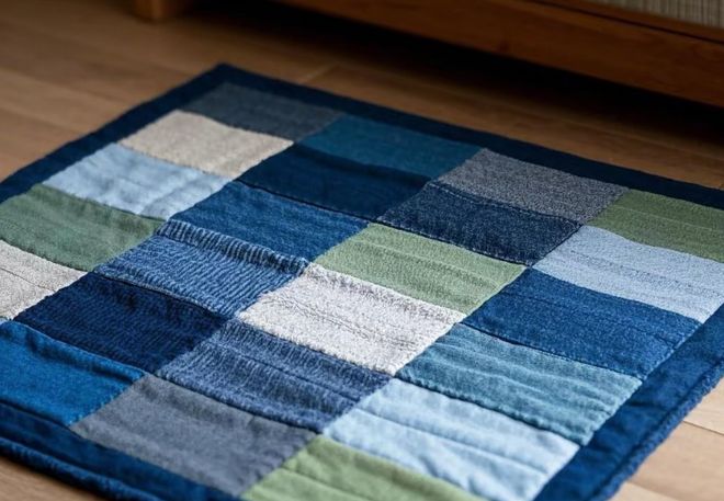 现在很多人习惯在家里坐地上,所以都是买地毯、地垫,其实旧衣服就可以制作。