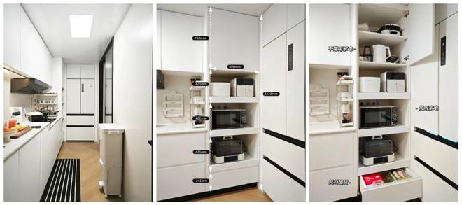 比如在厨房里设计一组家电柜,再搭配上抽拉式开放层,不仅解决了小家电收纳需求,使用时也方便了许多。