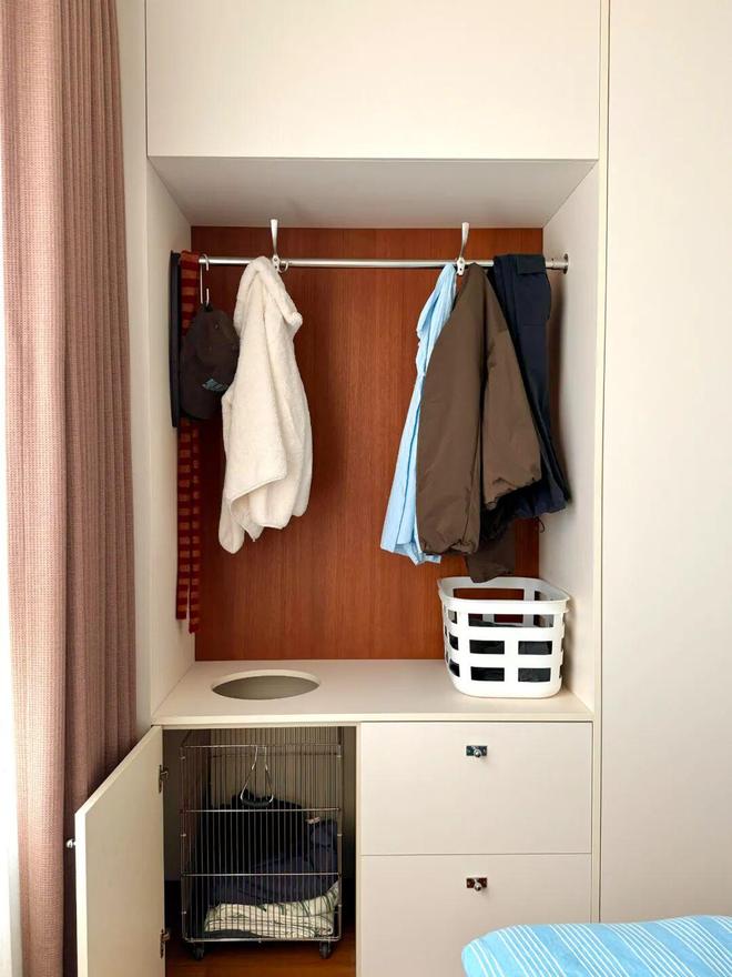 就拿每天睡前脱下来的衣服来说,如果没考虑好收纳,大概率会随手扔在飘窗上、床头柜上,以及地上,那叫一个乱。