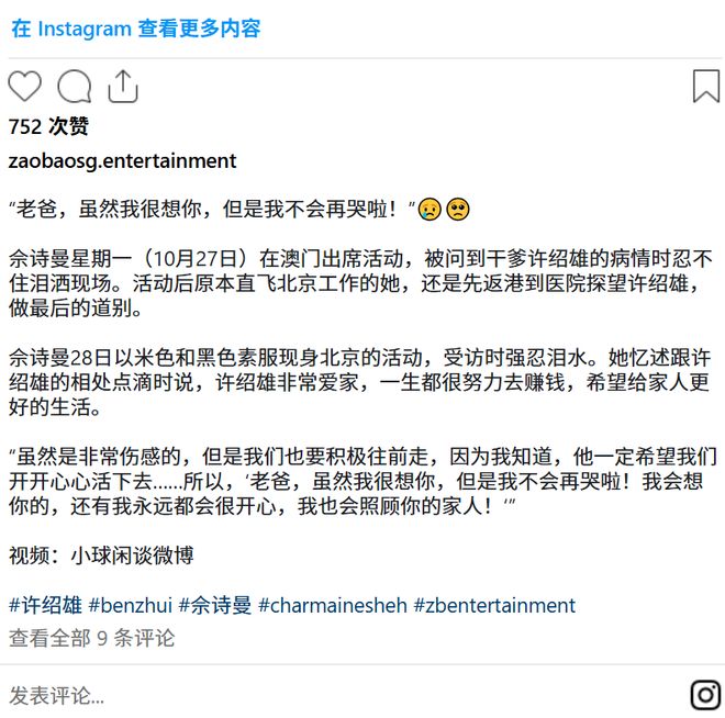 所以10月份她在演员许绍雄过世后说出“干爹,我会好好照顾你的家人”时,所有人都知道她是真心的。