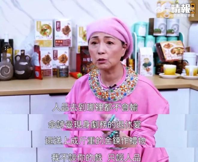 更让苑琼丹赞不绝口的是阿佘的人品,“有一年TVB一位场务退休,场务在行业里地位不高,而且这位场务都要退休了,很多人可能会觉得更没有‘巴结’的价值了。这位场务退休吃饭时,只有阿佘到场,而且阿佘还送了价值十几万的金项链当做荣休礼物。这人品,放在哪里都没得比。”