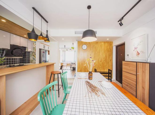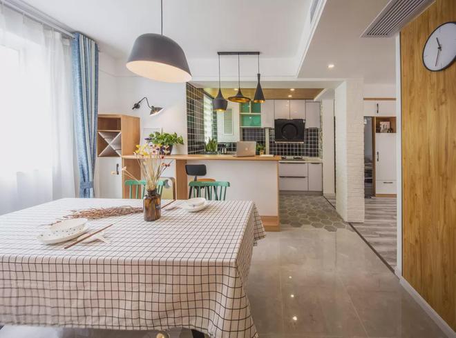 ▲回家后的第一眼,看到的开放式的餐厨空间,整体简约文艺的空间,显得闲适自然。