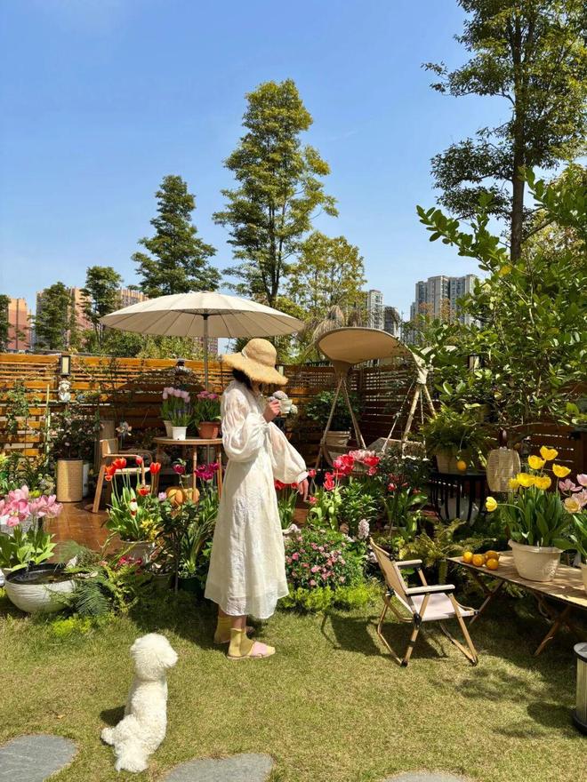 3)休闲聚会:清晨晒太阳,傍晚喝茶,还可以布置桌椅和遮阳伞,周末与三两好友小聚,多给生活几分惬意与仪式感。