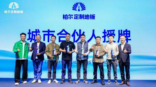 启动仪式圆满结束后,现场节奏再度升温,朱国良先生与覃思老师为柏尔城市合伙人隆重颁发荣誉证书。这一授证环节不仅见证了柏尔与核心合作伙伴的深度绑定,更彰显了品牌携手盟友构建高端地板生态联盟、共启市场新征程的坚定决心,将现场氛围推向最高潮。
