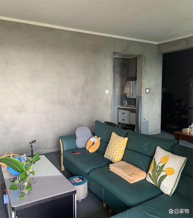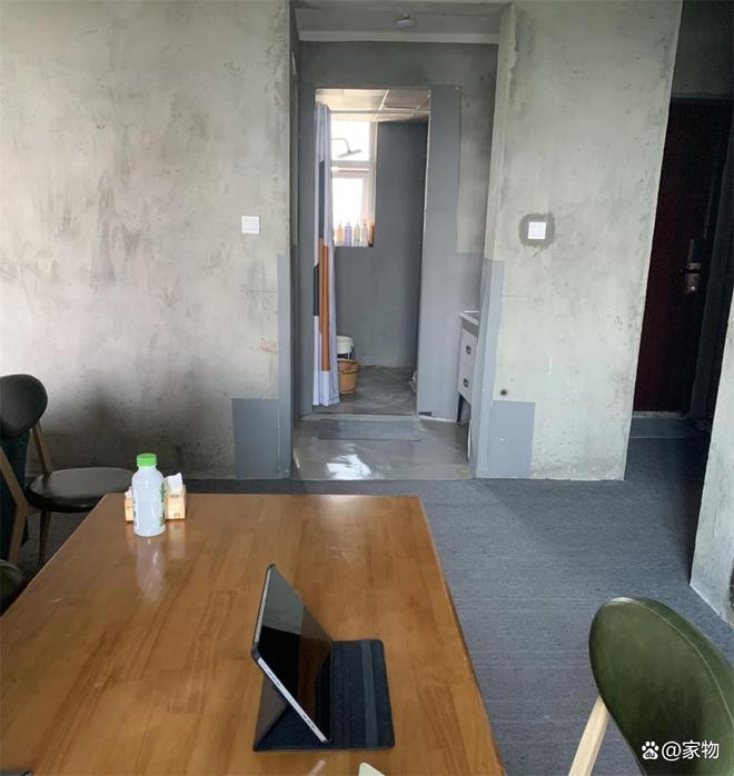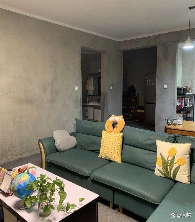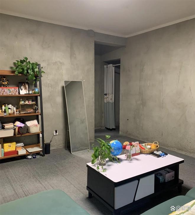 最近,我就发现了一对四川夫妻(@斯室陋室)的家,完全保留了毛坯房的状态,屋内两室一厅还是横厅户型,两人入住3年时间,也只置办了基础家具,其余空间都未做装修,连墙都没刷。