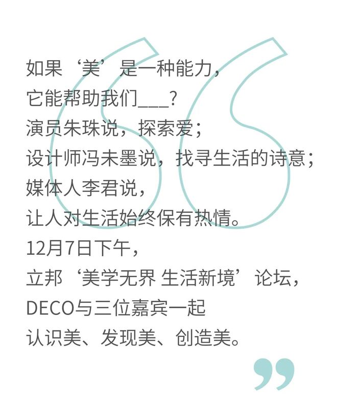 看完不同领域嘉宾们对于美的理解和分享,你如何认识“美”、并在生活中发现“美”?欢迎下方留言和我们分享你的想法,DECO将选出一位精彩留言送出一本新刊。