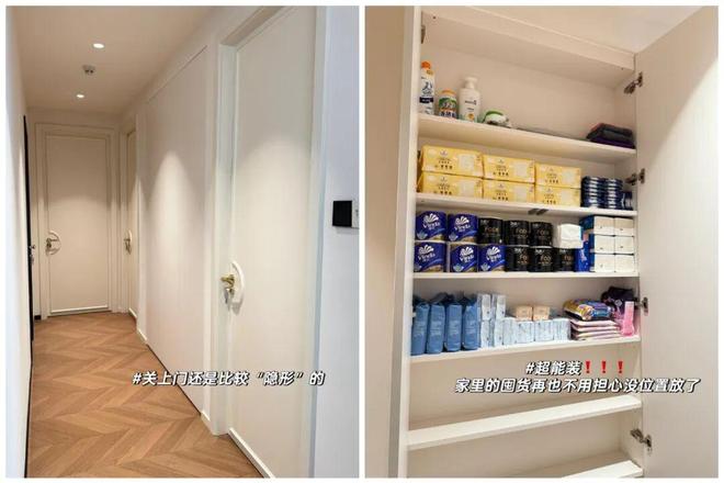 关上柜门后和墙体齐平,简洁又美观;打开柜门后,则收纳了各种零零碎碎,简直太香了。