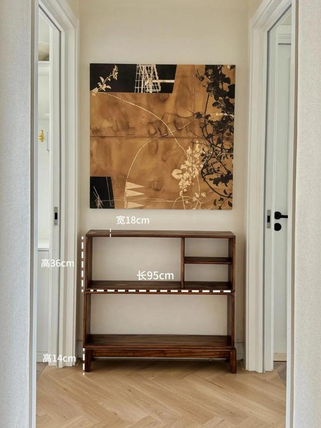 没错,我家走廊就挂了一幅破画,但要说储物能力,全网估计没有一个比我家强的。首先是侧面的嵌入式储物柜,提供了收纳。