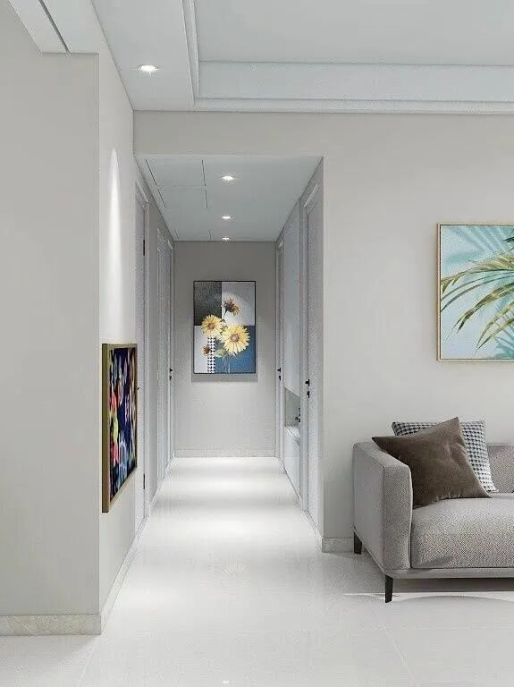 现在不少住宅户型,都有一个长长的走廊。虽然明知很浪费,但在装修设计时,似乎也只有挂画这一项选择。
