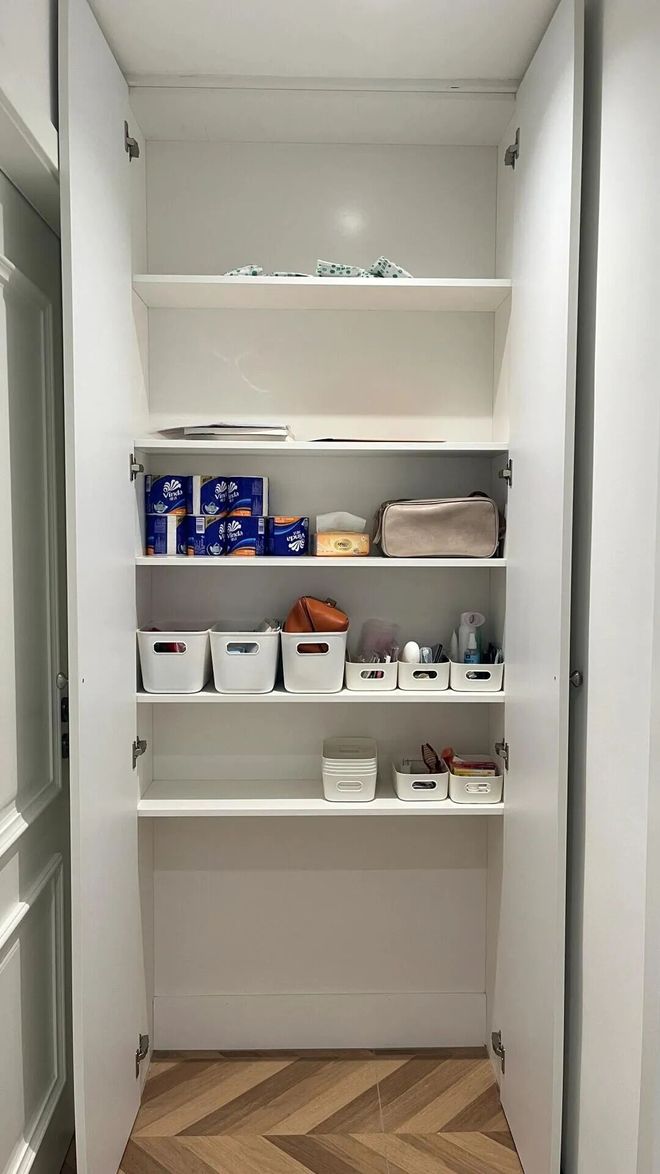 小tips:只要墙体可以拆,哪怕做一组深度15cm的薄柜也超级能装,并且只会占用几公分宽的次卧空间,几乎没影响。