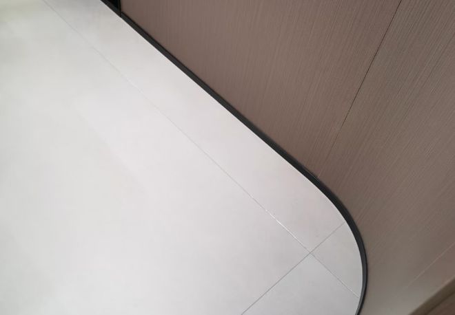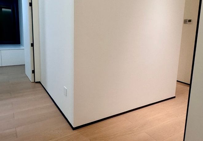 不锈钢的踢脚线,除了常规墙面的保护以外,特别适合极简风格,或者是容易受潮的一些地区。