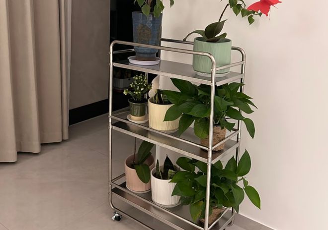 阳台花架单层高度至少要保证30公分,确保植物的生长空间。另外,建议选择可拆卸分层设计,方便换植物或者是清洁。