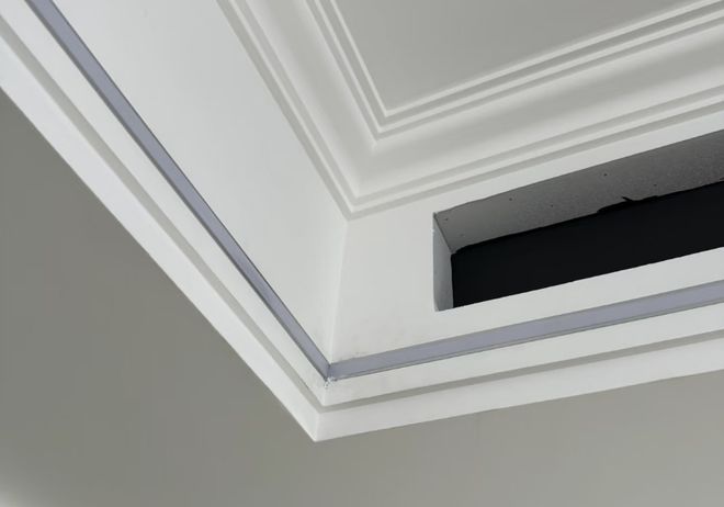 做法建议:选择时,尽量选择内壁经过漫反射处理的,避免直接镜面反射,造成刺眼光斑。在水电阶段要预留电源线,木工阶段要预留槽体,最后才是安装灯带和扩散罩。