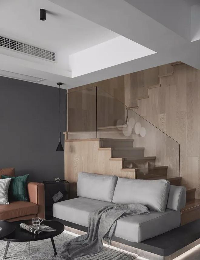 这套复式房子的面积大概是135平,整体空间以现代简约风格的设计,在高级灰色色调基础,布置现代舒适的家具与细节,营造出一种回归本身的自然与轻松居住感。