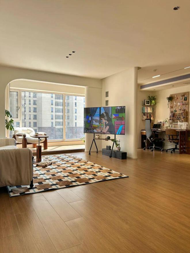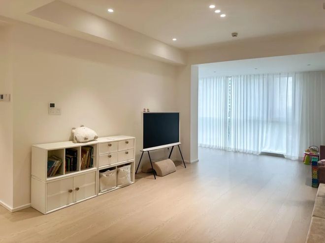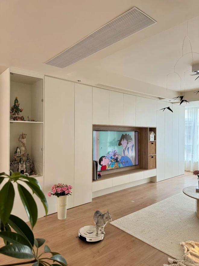 网友@猕猴桃:装修最正确的决定,就是电视墙啥也没做,直接大白墙挂电视机,再搭配一组电视柜,空间视觉直接放大1.5倍,并且刚好可以把省下的背景墙预算,换一台大电视。