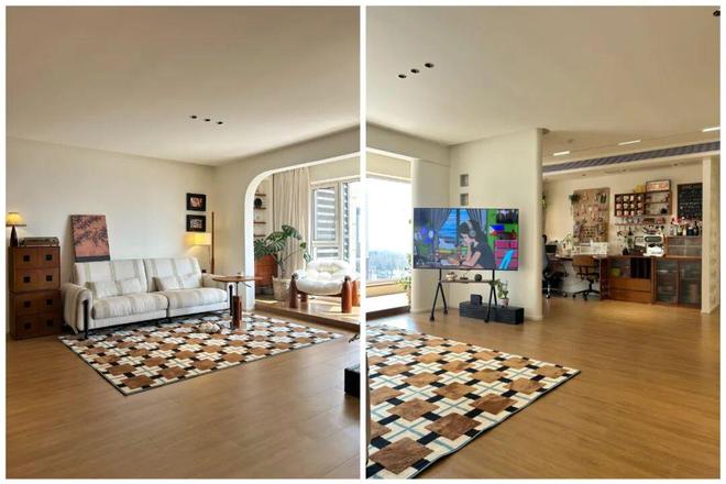网友@秦一的家:我把客厅和卧室打通了,原有了电视墙只留了半面充当隔断,整个客厅大了一倍都不止,那叫一个爽。