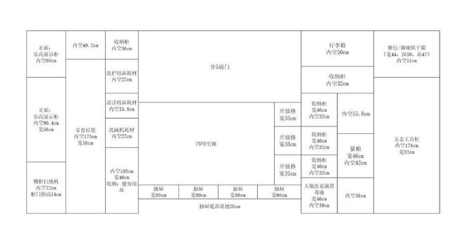 对了,我家客厅开间4.4m,下图是柜子的分区示意图。