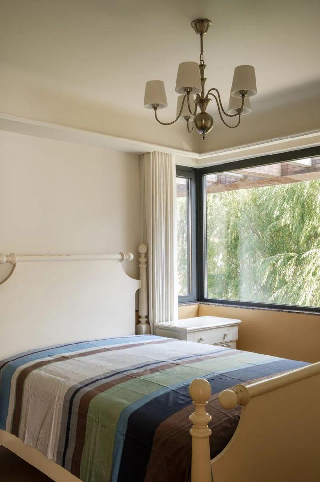 考虑到阿姨阿姨睡眠较浅,设计团队特意将床头左侧的小窗做了封闭处理,从源头隔绝了夜间路灯、晨光等多余光线的渗透,最大程度降低了光影对睡眠的干扰,为其营造了静谧、优质的睡眠环境。