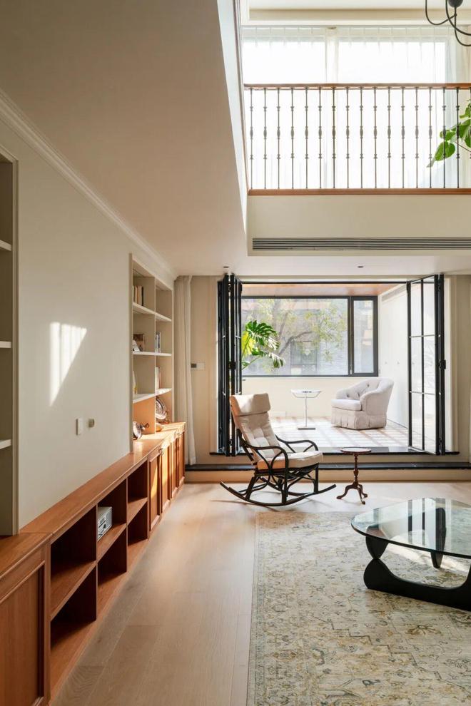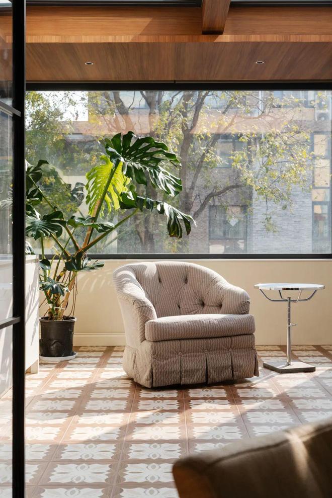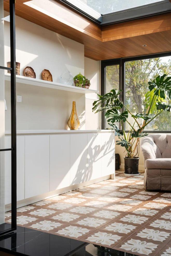 改造后的阳光房在功能上更为复合与丰富,成为屋主养花、做瑜伽、晒太阳、洗衣晾晒与集中储物的全能空间。顶部采用高质量电动开启窗,搭配中央空调系统,确保这里四季温度宜人、通风透气,即便阳光强烈照射,房间也不会闷热。