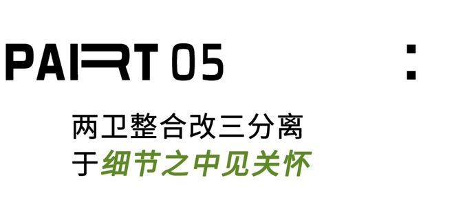 将两个功能重叠的卫生间合并,打造出超过10㎡的三分离套间,同时,两个入口的设计构成流畅的洄游动线,大幅度提升卫浴体验。