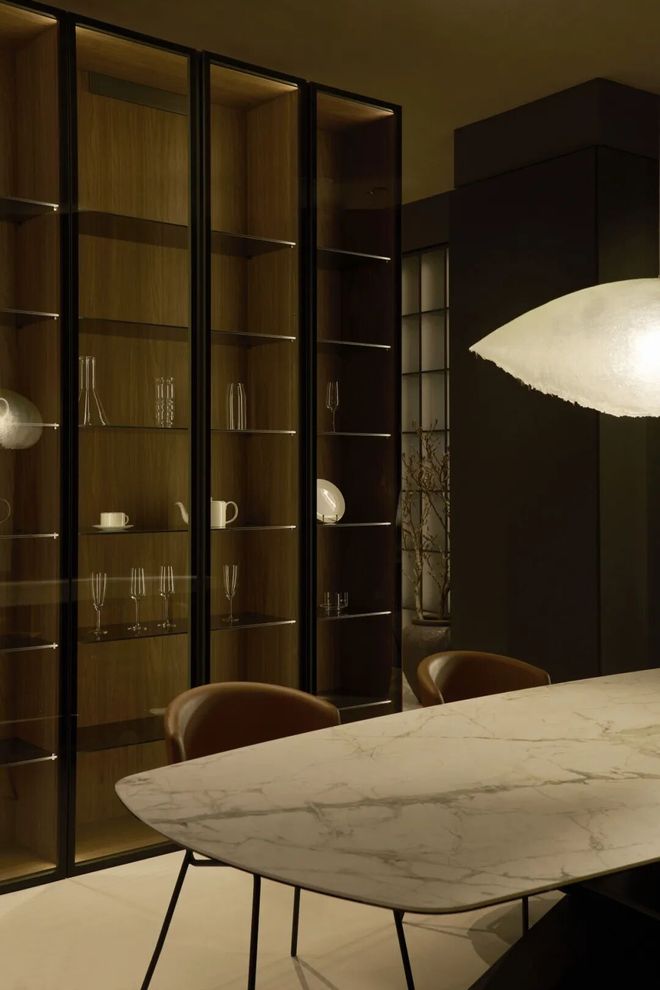 沿墙面排布的Wallover系列组合模块,以墙为画布,自由创作,赋予空间视觉的连贯性。柜子化身几何雕塑,留白之间随心策展,带来艺术展陈的美学效果。全新升级的上海旗舰店,搭建了一个宏大的灵感实验室。Caccaro始终以量身定制的解决方案,多元模块组合,衍生无限空间可能。室内设计被赋予全新价值,兼具建筑级深度与结构属性,成为空间规划的核心,能够同时回应肉体与精神的双重需求。