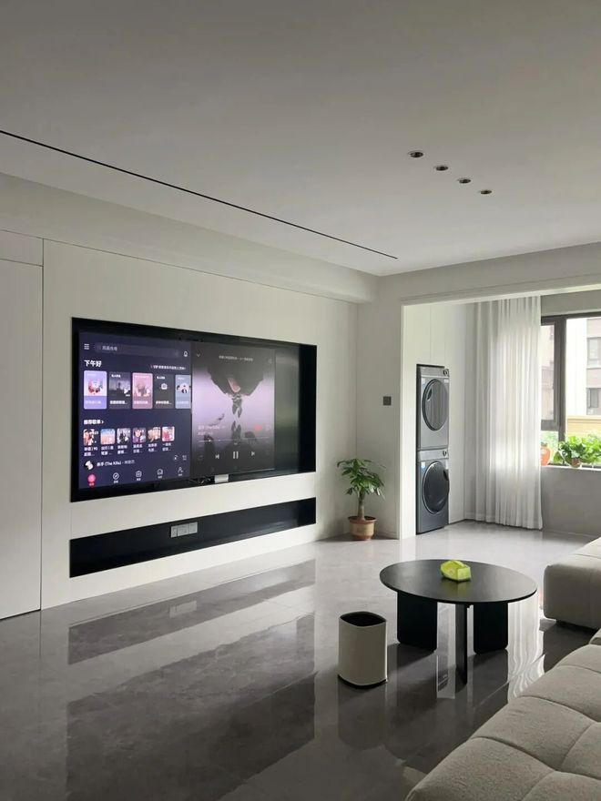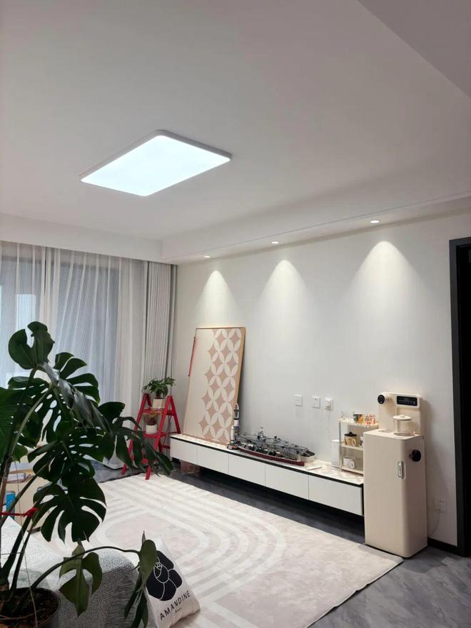 网友@猕猴桃:装修最正确的决定,就是电视墙啥也没做,直接大白墙挂电视机,再搭配一组电视柜,空间视觉直接放大1.5倍,并且刚好可以把省下的背景墙预算,换一台大电视。