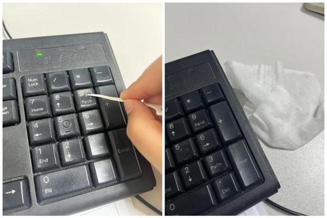 此外,像键帽上面的油垢,也可以用牙线慢慢刮起来,然后湿纸巾擦掉,赶紧去试试吧。