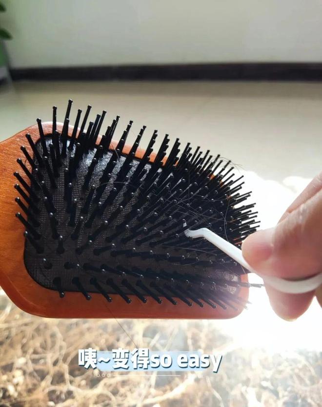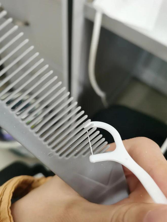 普通梳子的缝隙,可以用牙线慢慢来回摩擦,清洁效率比用刷子来回刷还要高。