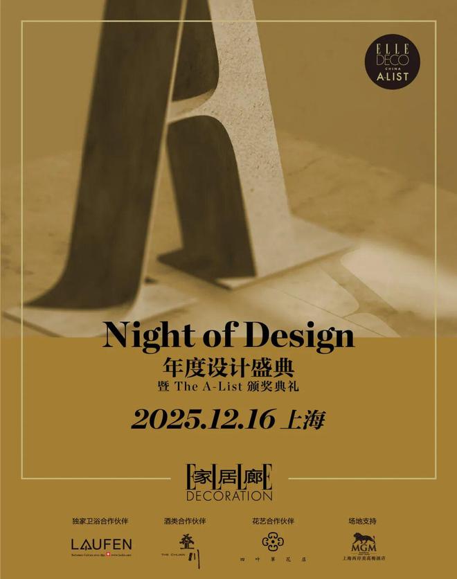 值得期待的是,12月16日,《家居廊ELLE DECORATION》2025年度设计盛典暨 The A-List 颁奖典礼将在上海举行。届时,“Young Talents年度新星”特别奖项也将于现场进行颁发。
