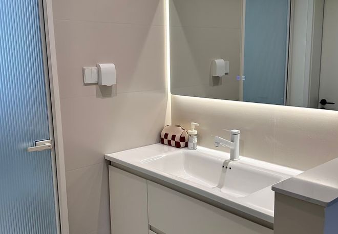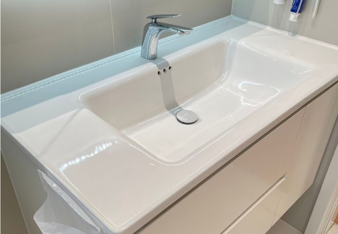 如果实在喜欢岩板,可以选择岩板台面加独立盆体。当然了,一定要保证盆体安装的牢固,避免盆体脱落。