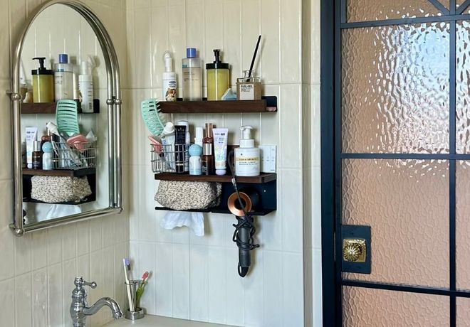 装修建议:卫生间的收纳,还是优先考虑外置收纳,例如转角架,壁挂架,方便又实用。