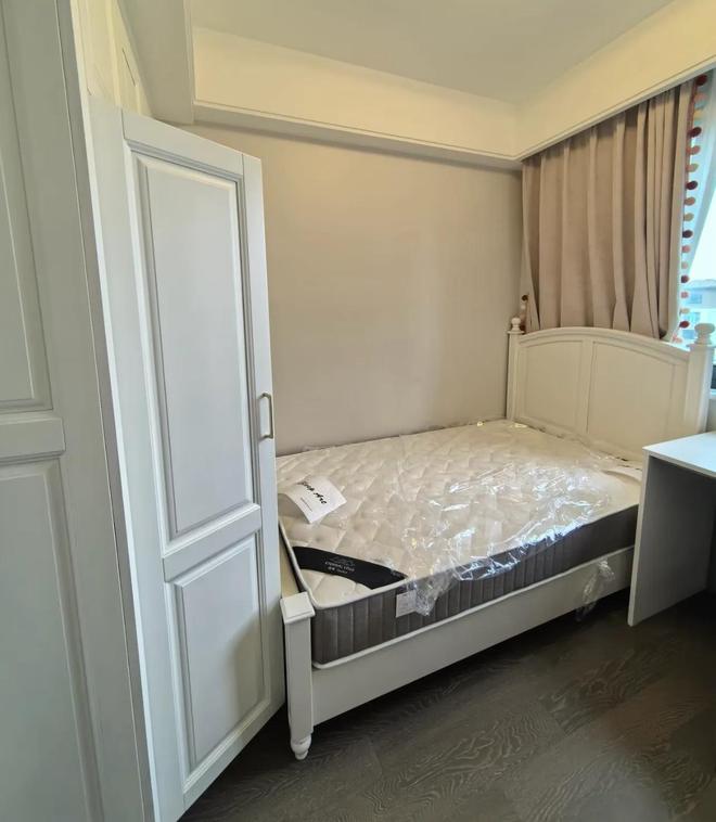 再比如,很多人只算了静态尺寸,一体化书桌柜、床、衣柜都安排的明明白白,却忽略了动态尺寸——柜门打开需要空间。