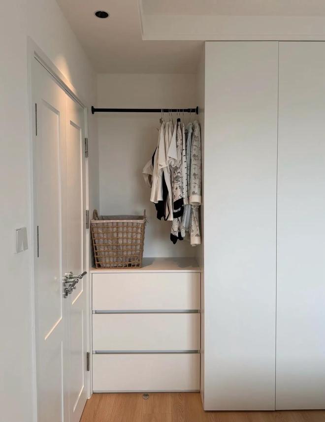 结果就是,柜门只能开一半,如果不想每次拿衣服都得侧着身子、练就一手精准盲掏的功夫,就至少要换掉一样家具。