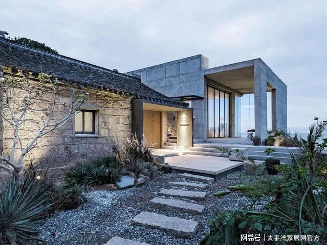 【关天颀】“新共生可持续”的落地,核心是遵循道法自然,以在地性为锚点,让设计如草木生长般自然融入场地。在舟山黄龙岛老石屋改造中,我们保留了当地石材建造的老结构,仅对坍塌屋面做功能性修复,新建的钢筋混凝土盒子刻意退后于老建筑与海景,既延续了渔民生活的人文记忆,又通过270度落地窗实现自然景观与室内空间的共生,材料上优先选用本土石材,减少运输能耗,实现生态可持续。
