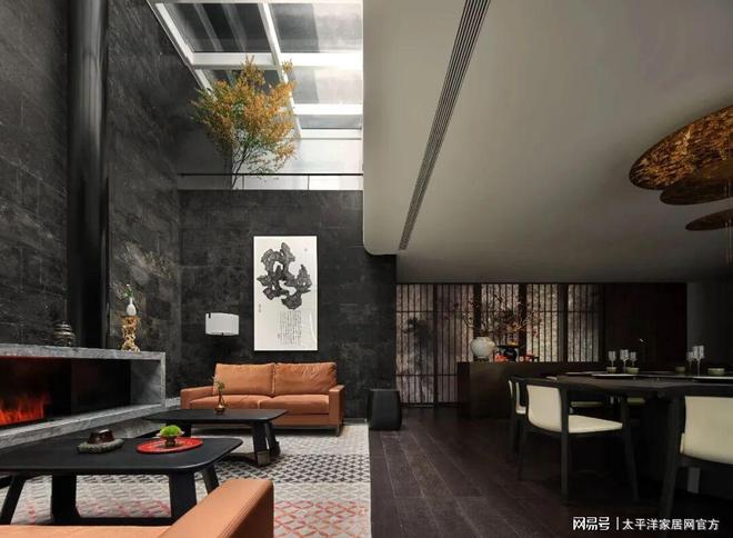 在“一见・茶事”的商业空间中,设计没有为了凸显茶室风格堆砌茶席、字画等符号,而是让设计隐于细节。烧杉木从壁炉延伸到门扇、吊顶,与黑色水磨石地面形成统一的素净色调,仅用壁炉火光增添暖意;昌迪加尔椅的藤编工艺、石雕貔貅的古朴质感,都不是刻意摆放的东方元素,而是自然融入空间的生活物件。这种无设计感的表达,既减少了多余装饰的材料消耗,又让顾客在松弛的氛围中专注于茶事本身,避免了风格化设计带来的审美疲劳。